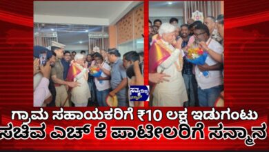 ಗ್ರಾಮ ಸಹಾಯಕರಿಗೆ ₹10 ಲಕ್ಷ ಇಡುಗಂಟು/ ಸಚಿವ ಸಂಪುಟ ಒಪ್ಪಿಗೆ:ಎಚ್ ಕೆ ಪಾಟೀಲರಿಗೆ ಸನ್ಮಾನ.