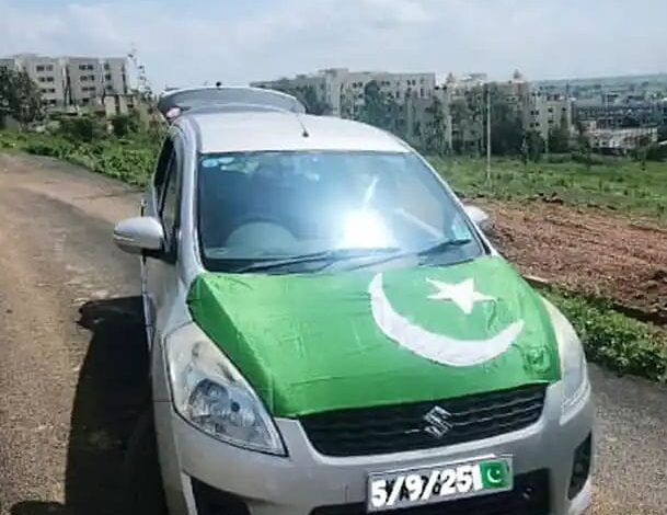 ಕಾರಿನ ಬಾನೆಟ್ ಮೇಲೆ ಪಾಕಿಸ್ತಾನ ಧ್ವಜ: ಸುಮೊಟೊ ಪ್ರಕರಣ ದಾಖಲು.