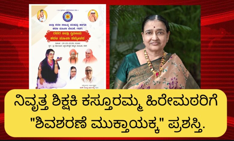 ನಿವೃತ್ತ ಶಿಕ್ಷಕಿ ಕಸ್ತೂರಮ್ಮ ಹಿರೇಮಠ್ ರವರಿಗೆ “ಶಿವಶರಣೆ ಮುಕ್ತಾಯಕ್ಕ” ಪ್ರಶಸ್ತಿ.