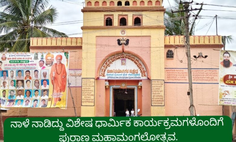 ನಾಳೆ ನಾಡಿದ್ದು ವಿಶೇಷ ಧಾರ್ಮಿಕ ಕಾರ್ಯಕ್ರಮಗಳೊಂದಿಗೆ ಪುರಾಣ ಮಹಾಮಂಗಲೋತ್ಸವ.