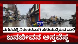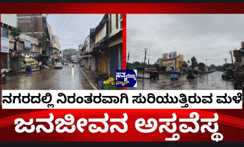 ನಗರದಲ್ಲಿ ನಿರಂತರವಾಗಿ ಸುರಿಯುತ್ತಿರುವ ಮಳೆ ಜನಜೀವನ ಅಸ್ತವ್ಯಸ್ತ.