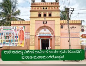 ನಾಳೆ ನಾಡಿದ್ದು ವಿಶೇಷ ಧಾರ್ಮಿಕ ಕಾರ್ಯಕ್ರಮಗಳೊಂದಿಗೆ ಪುರಾಣ ಮಹಾಮಂಗಲೋತ್ಸವ.