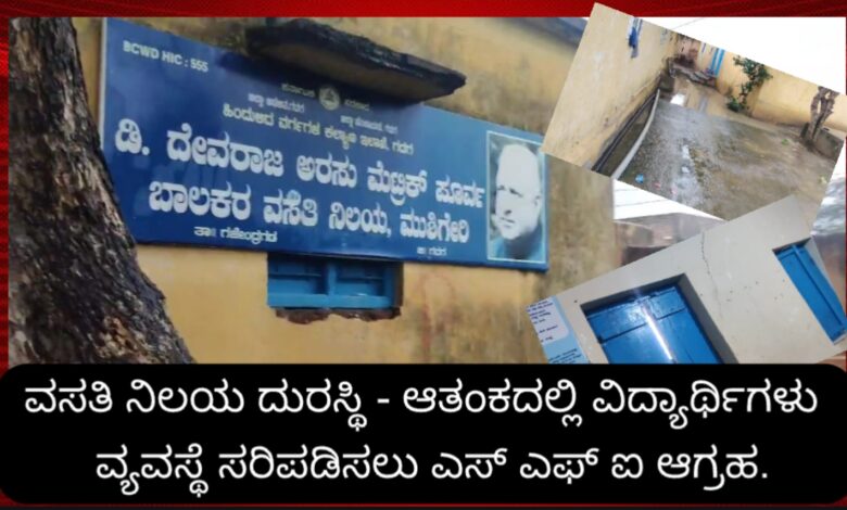 ವಸತಿ ನಿಲಯ ದುರಸ್ಥಿ – ಆತಂಕದಲ್ಲಿ ವಿದ್ಯಾರ್ಥಿಗಳು : ವ್ಯವಸ್ಥೆ ಸರಿಪಡಿಸಲು ಎಸ್ ಎಫ್ ಐ ಆಗ್ರಹ.