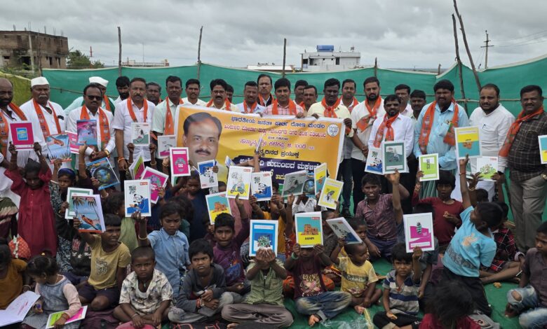ಮಕ್ಕಳಿಗೆ ಉಚಿತ ನೋಟ ಬುಕ್ ವಿತರಿಸುವ ಮೂಲಕ ಮಾಜಿ ಸಚಿವ ಕೆ.ಜಿ. ಬಂಡಿಯವರ ಜನ್ಮದಿನಾಚರಣೆ.