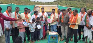 ಮಕ್ಕಳಿಗೆ ಉಚಿತ ನೋಟ ಬುಕ್ ವಿತರಿಸುವ ಮೂಲಕ ಮಾಜಿ ಸಚಿವ ಕೆ.ಜಿ. ಬಂಡಿಯವರ ಜನ್ಮದಿನಾಚರಣೆ.
