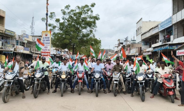 ಭಾರತೀಯ ಜನತಾ ಪಾರ್ಟಿ ರೋಣ ಮಂಡಲ ಯುವ ಮೋರ್ಚಾ ವತಿಯಿಂದ ನಗರದಲ್ಲಿಂದು ಹರ್ ಗರ್ ತಿರಂಗ ಅಭಿಯಾನದ ಅಂಗವಾಗಿ ಬೈಕ್ ರ್ಯಾಲಿ ಹಮ್ಮಿಕೊಳ್ಳಲಾಗಿತ್ತು.