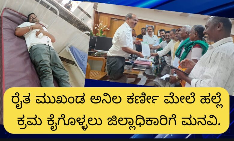 ರೈತ ಮುಖಂಡ ಅನಿಲ ಕರ್ಣೀ ಮೇಲೆ ಹಲ್ಲೆ ಕ್ರಮ ಕೈಗೊಳ್ಳಲು ಜಿಲ್ಲಾಧಿಕಾರಿಗೆ ಮನವಿ.